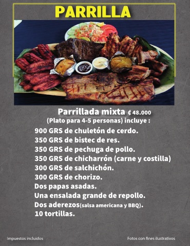 parrilla Impuestos incluidos Fotos con nes ilustrativos Fotos con nes ilustrativos